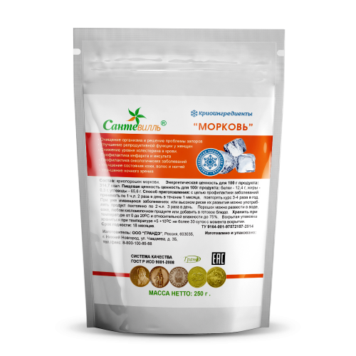 Добавка, произведенная по особенной криотехнологии. Ингредиент, входящий в состав этого препарата (морковь) в процессе обработки измельчается таким образом, что мы получаем высококонцентрированную витаминно-минеральную смесь.